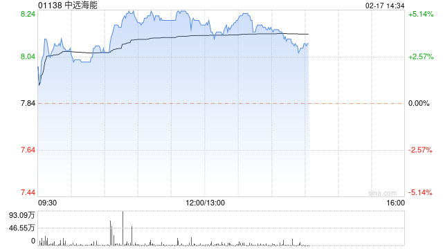 中远海能(01138)午后上涨3.06%,报8.08港元,成交额9096.48万港元。